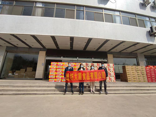 濰坊大順食品有限公司捐贈防疫物資,疫情防控人員夜以繼日保障廣大人民群眾的健康,我司為防控人員提供幫助,送去溫暖,為疫情抗擊工作做出微弱貢獻(xiàn),守護(hù)我們共同的家園。濰坊大順食品有限公司是一家專業(yè)生產(chǎn)低溫油炸果蔬脆片的工廠,我們有60多種產(chǎn)品,有12年的生產(chǎn)經(jīng)驗。產(chǎn)品出口日韓、歐美多個國家。